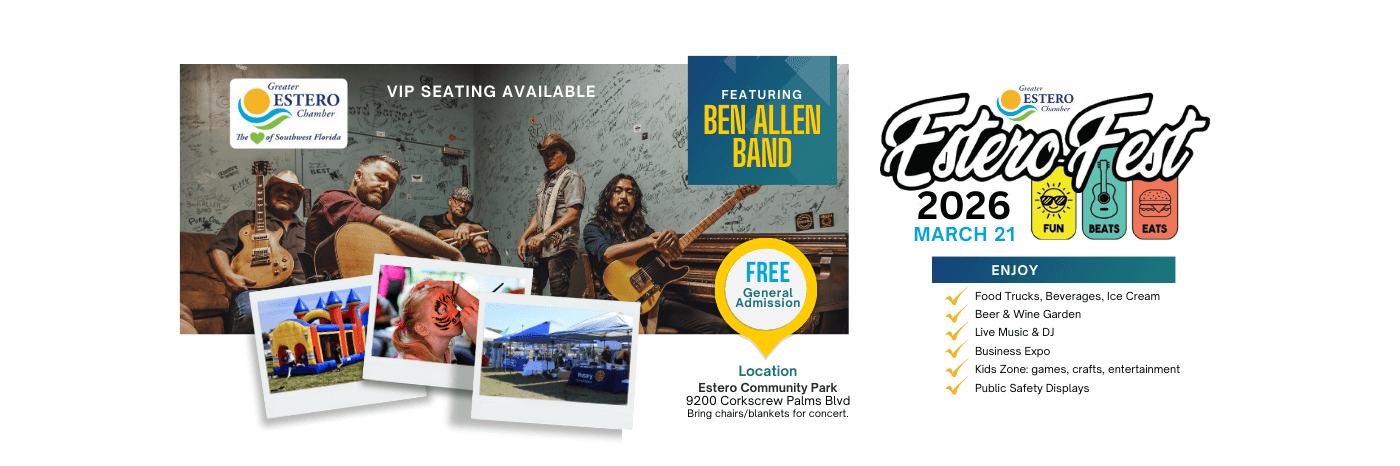 Join the Estero Chamber of Commerce. Our mission is to enhance a vibrant business community that creates dynamic economic growth!